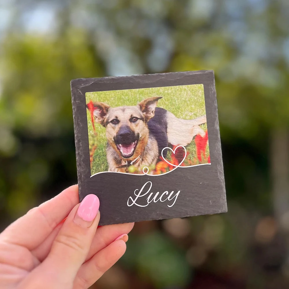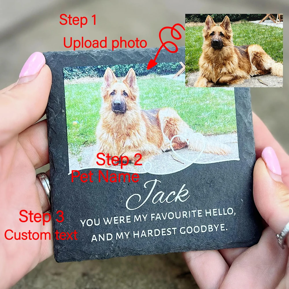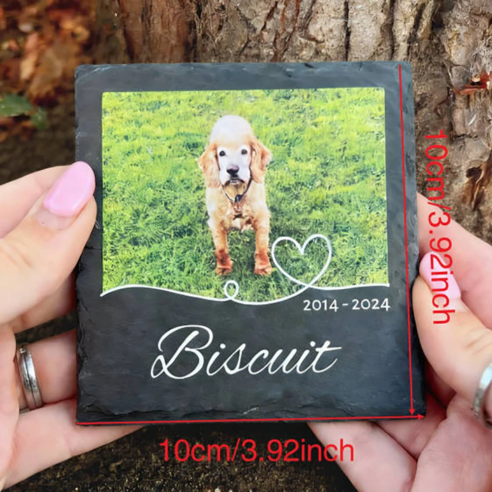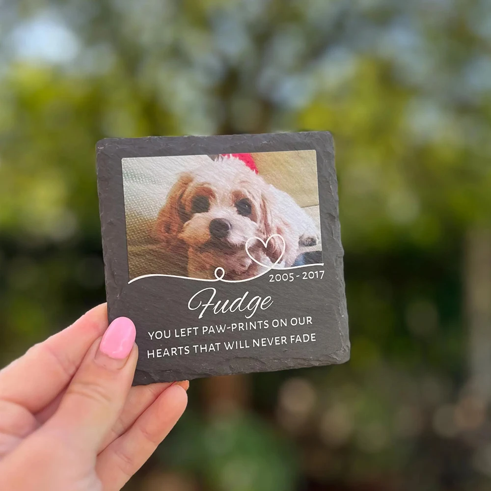 Honor the memory of a cherished companion with this personalized pet memorial slate stone. Customizable with a photo, name, and meaningful details, it creates a heartfelt tribute for dogs, cats, or any beloved pet. The durable slate design makes it ideal for display in gardens, gravesides, or indoor remembrance spaces, while the natural stone look adds timeless beauty. Thoughtful and deeply sentimental, this custom memorial plaque serves as a lasting keepsake and a comforting gift for anyone remembering a loyal furry friend. 🐾🪨